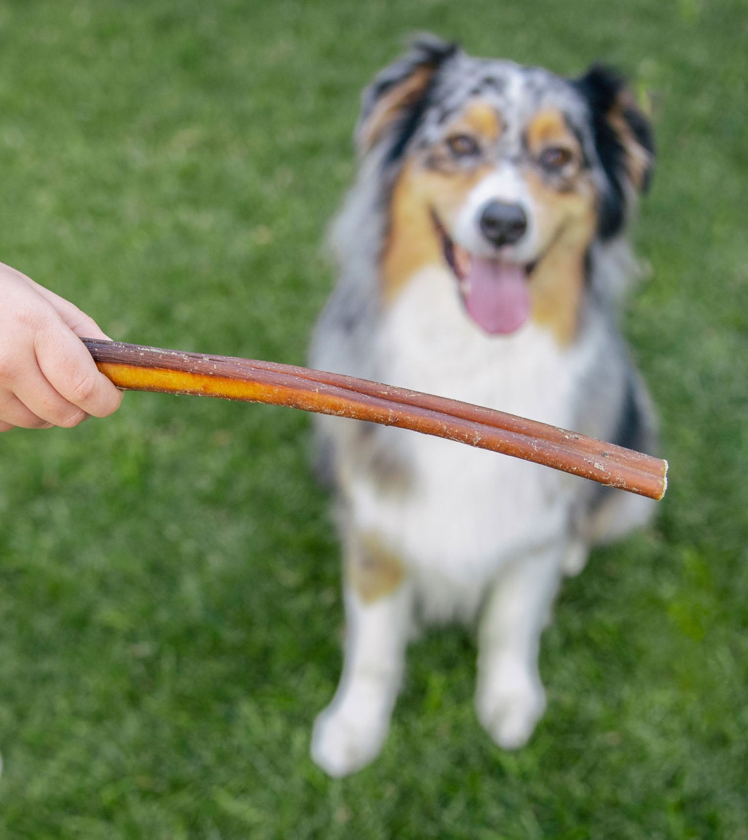 Bully sticks are a natural, protein-rich chew that supports dental health and satisfies your dog’s instinct to chew—without the risks of rawhide or artificial chews. They help clean teeth, reduce plaque, and keep your pup occupied in a safe, digestible way. Our bully sticks are made from 100% natural beef—sourced from free-range, grass-fed, USA-raised cattle—with no chemicals, additives, or preservatives. YES - the best of the best for your pup! They’re fully digestible, high in protein, and gentle on your dog’s stomach, making them a healthy and rewarding treat.