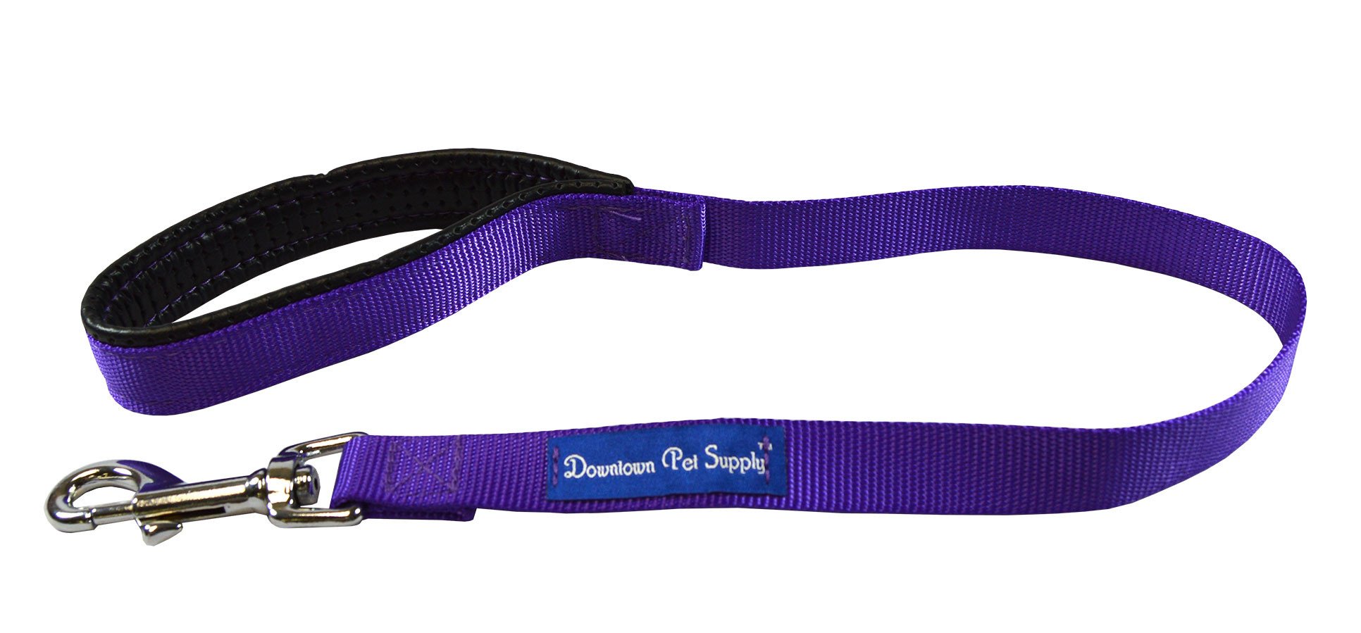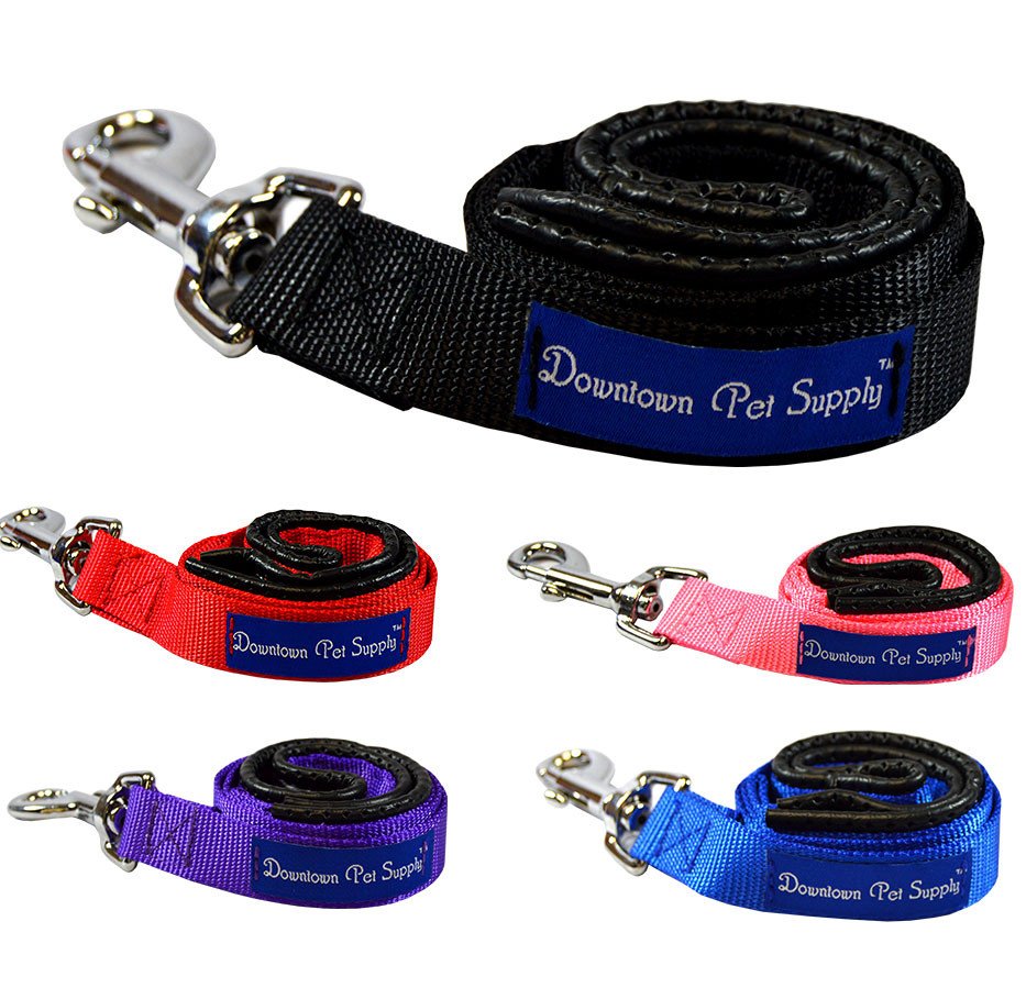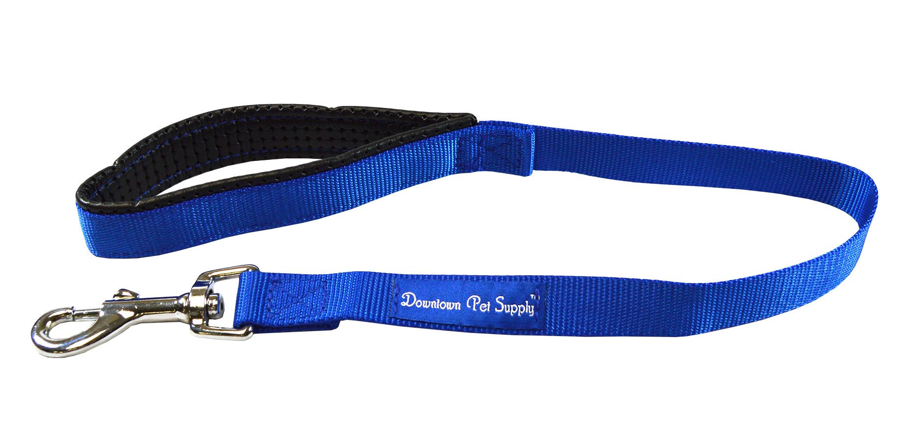 The Downtown Pet Supply durable dog leash is available in a variety of classic colors and sizes. These dog leashes are 2 feet long by .75 inches wide. You will love the easy to grip padded comfort handle and the convenient stainless fastener for quick on and off control. This dog leash is incredibly durable woven with Polypropylene to resist water and mildew making this leash your go to for walks in any weather. Makes for a great dog training leash. Can be used with other dog collars harnesses & leashes. Grab a coupler and use it as a two dog leash. Use it as a dog training leash or just use as a dog walking leash. Suitable for small dogs & medium dogs. All-in-all a best-of-breed set of dog leashes and collars.