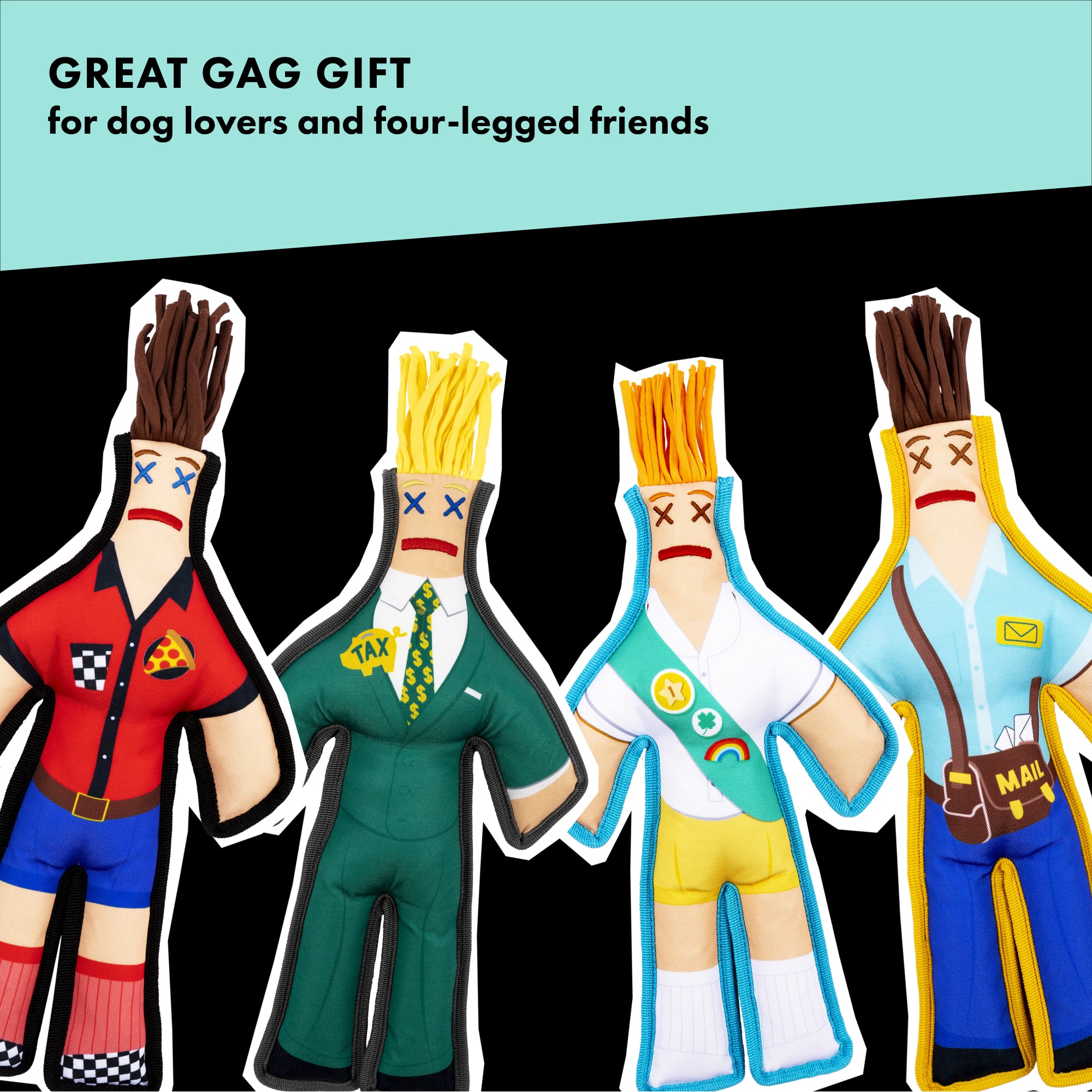 How are you going to come up to MY doorstep with boxes of delicious treats and NOT SHARE? Bark! Bark bark bark! This hilarious toy features a tough reinforced stitch and an irresistible squeaker inside. Perfect for light to medium chewers looking to redistribute a little cookie wealth!