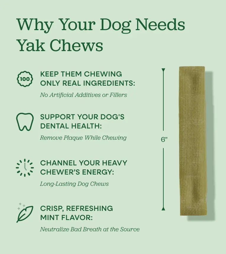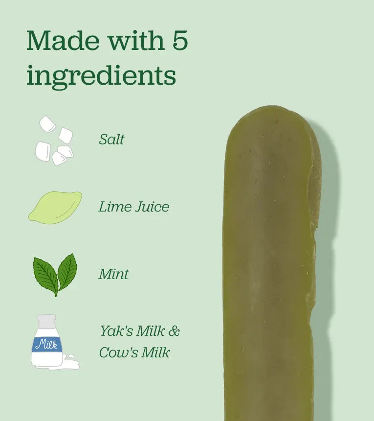 - Wholesome & Simple: Just five simple ingredients — yak milk, cow milk, mint, lime juice and pinch of salt. Each chew is naturally high in protein, grain-free, and easy to digest