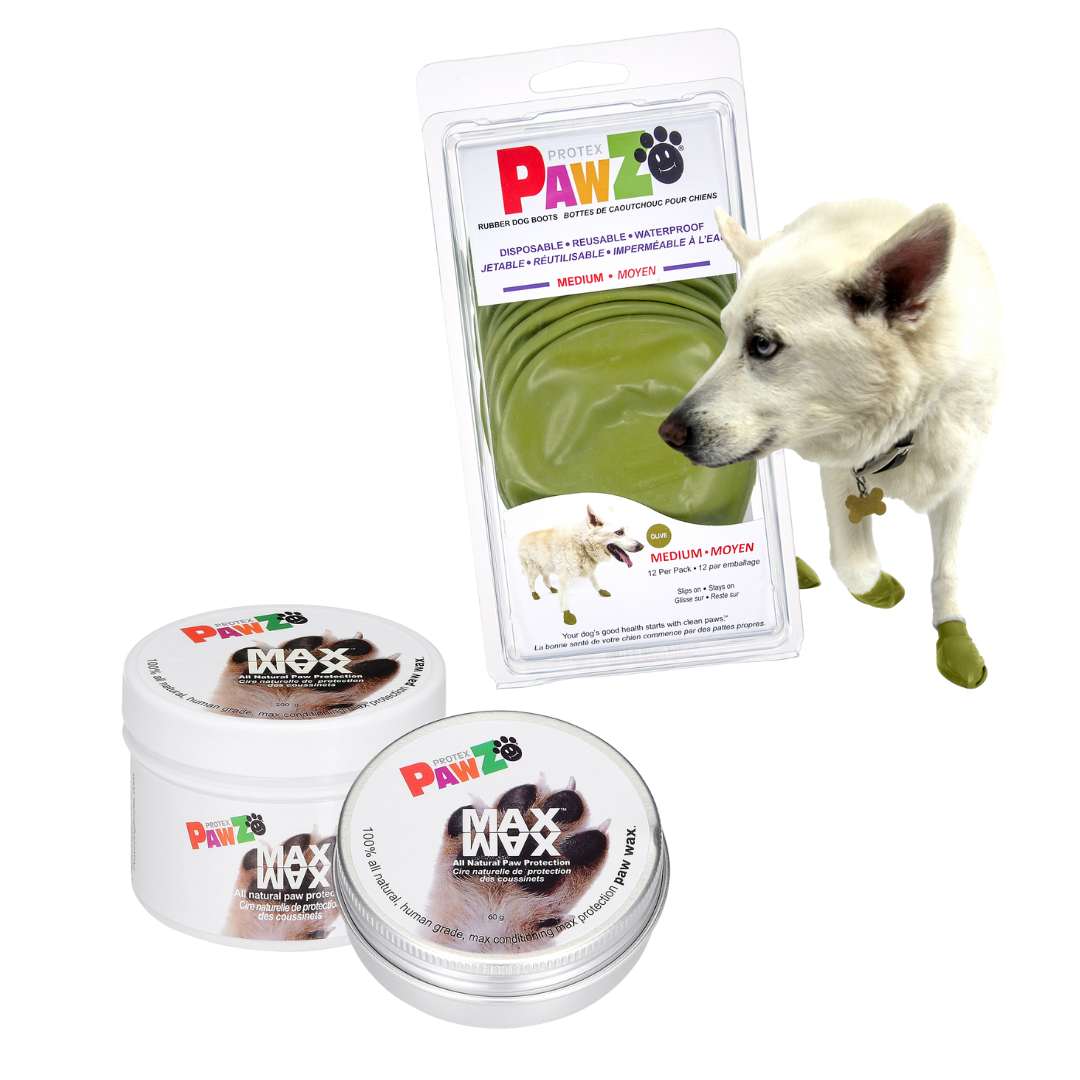 Keep your dog's paws happy and healthy with our Paw Care Bundle! Optimized to keep your dog's paws and safe and moisturized. Our dog boots protect their soft pads while our MaxWax paw balm moisturizes and repairs rough pads.