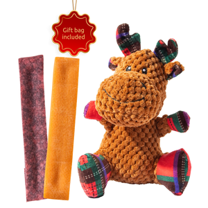 Treat your pup to Santa's greatest hits — a our viral cranberry yak chew+ and pumpkin yak chew paired with our squeaky reindeer toy This festive bundle brings chew time and playtime together for less. Bundle and save while stuffing your pup's stocking with the taste (and squeaks) of the season!